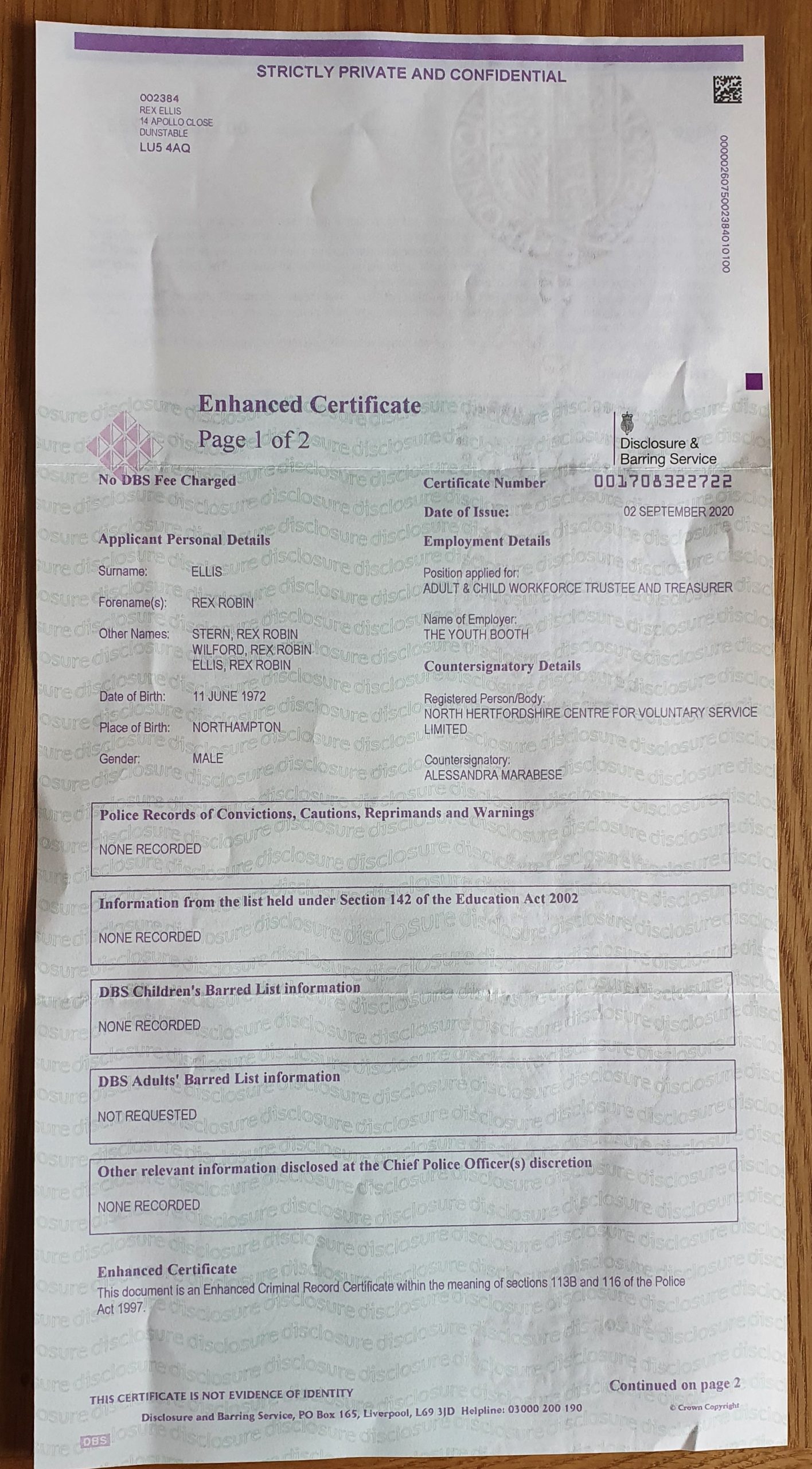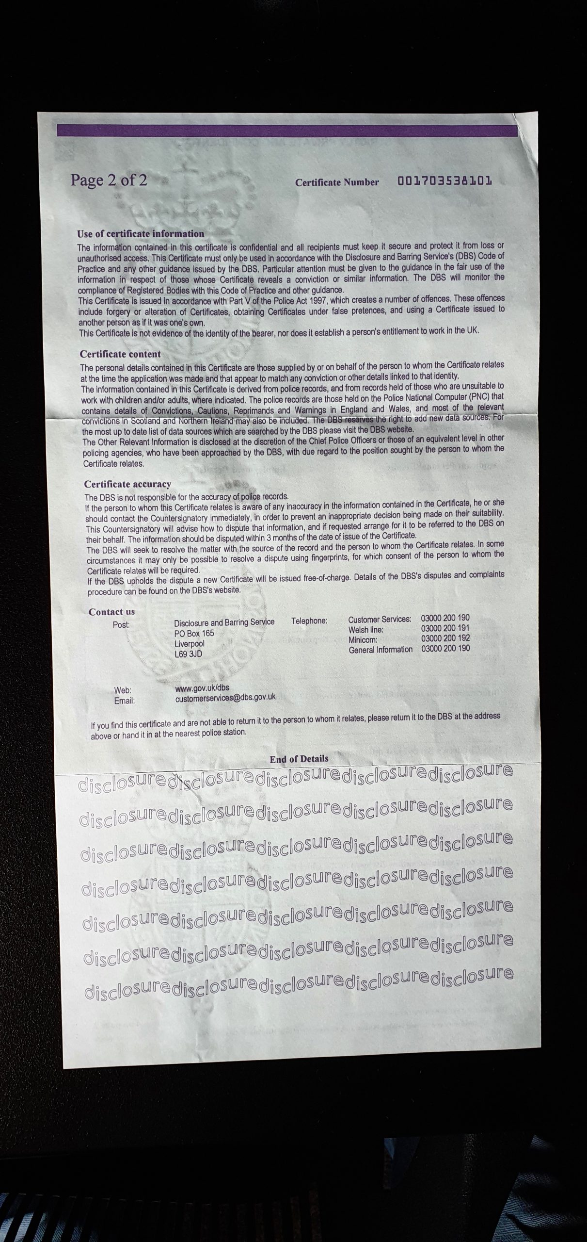 DBS Certificates.